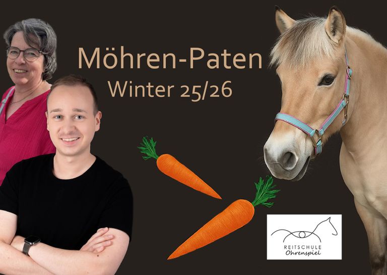 Auch in diesem Jahr konnten wir wieder die Möhren-Patenschaften für unsere Schulpferde an Gönner unserer kleinen Reitschule vergeben.